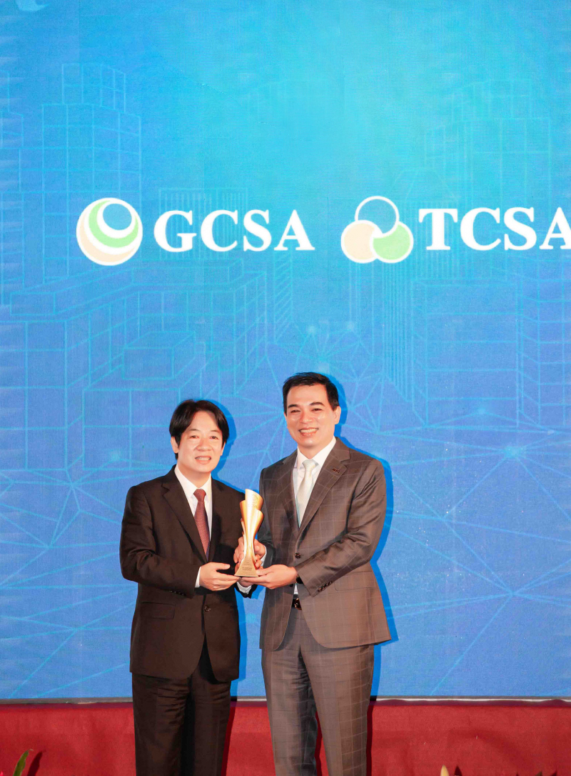 ![]() 达全方位永续表现获全球永续奖及台湾永续奖肯定,由副总统赖清德颁奖 (左),拼搏体育官网总经理柯富仁 (右) 代表领奖